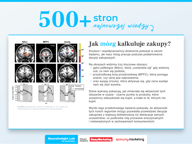 → Prace Briana Knutsona czy Haynesa wykazały, że aktywność mózgu pozwala przewidzieć decyzje zakupowe nawet na kilka sekund przed tym, zanim świadomie je podejmiemy.