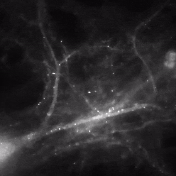Na gifie poniżej inne ciekawe odkrycie z Albert Einstein College of Medicine którego zespół badawczy uchwycił momenty, w których mózg tworzy wspomnienia, śledząc mRNA beta-aktyny za pomocą fluorescencyjnych „znaczników”.