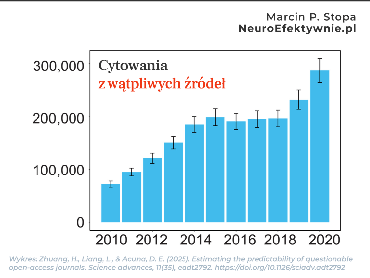 Setki tysięcy artykułów i miliony cytowań z „podejrzanych” tytułów – efekt skali, który trudno ignorować.